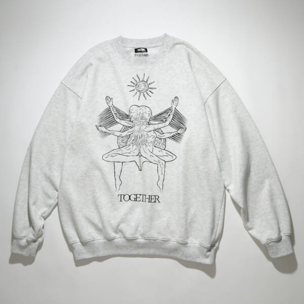 具体的には、2人の腕が融合しているキーアートをフロントに、劇中の洞窟のなかで目撃する壁画と“No dissonance, only warmth.”のセリフを背面に両面シルクスクリーンにてあしらったものや、キスの後に唇がくっついてしまうシーンのキーアートをプリントしたデザイン、2人の腕がくっついてしまう現象を表現したTシャツなどのアパレル全5型に加え、歯に挟まった髪の毛を抜き出すシーンに着想を得たフロス風のキーホルダーを展開。映画『トゥギャザー』の世界観を表現した異質なデザインのアイテムを、公開前にチェックしておこう。