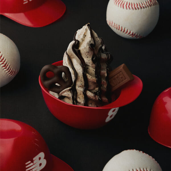 日本語で“安打(Safe Hit)”を意味する限定メニュー “The Anda”は、日本の球場グルメに着想を得たフレーバー。Kith Treats バニラアイスクリームに、チョコレートコーティングプレッツェル、ライスパフ、クッキー&クリームをミックスし、チョコレートドリズル、チョコレートプレッツェル、チョコレートスポンジケーキをトッピング。懐かしさと満足感のある味わいに、Kith Treatsならではのアレンジを加え、野球観戦の楽しさを表現した一杯に仕上げている。