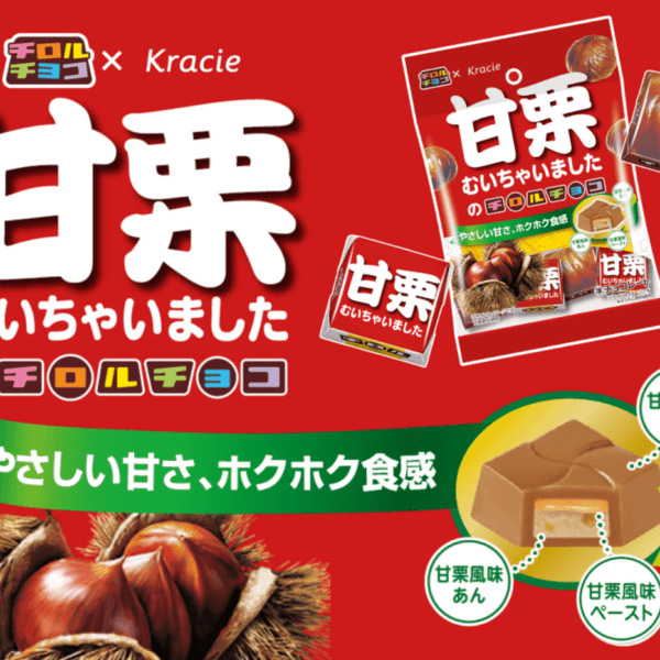 今回のコラボレーションでは、四半世紀愛され続けている”甘栗むいちゃいました”をなんとチロルチョコで再現。甘栗風味の生地のなかにペーストとあんで本格的な“甘栗むいちゃいました”の風味と食感を表現。この季節にぴったりなホクホクとした優しい味わいに。