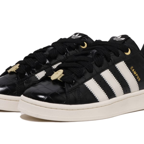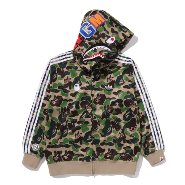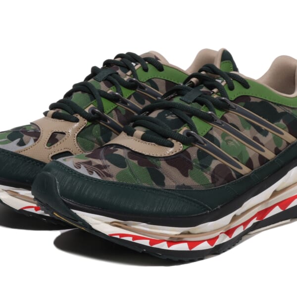 フットウェアは、ADISTAR HRMY、SAMBA、CAMPUS 00’Sの3型を展開。ADISTAR HRMYは、リフレクター仕様のBAPE STA™ アンダーレイの上にトレフォイルを加えたABC CAMOの特色溢れるグリーンアッパーを重ね、シャークモチーフのプリントでミッドソールを支える構造に。前回のシーズンで初登場したSAMBAは、新色を展開。CAMPUS 00’Sはブラックを基調に、外側にホワイトの〈BAPE®︎〉シグネチャーであるSTAのグラフィックを加え、内側にスリーストライプスをそれぞれデザインした。