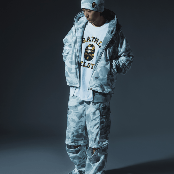 そのほか、取り外し可能なスリーブを備えたレインジャケット、同ジャケットとセットアップで着用できるリラックスフィットのカーゴパンツ、Tシャツ、コラボレーション仕様のBAPE STA™、ビーニーが登場。頭から足元までを網羅するフルラインアップで、両ブランドの美学をシームレスに融合させたコレクションとなっている。