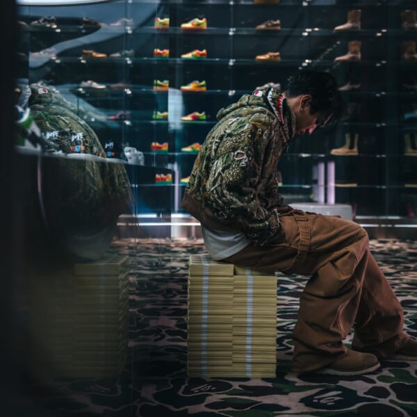 まずは、DROP1に続き、SWAYがモデルを務め、BAPEXCLUSIVE™ AOYAMAにて、フォトグラファーのRKが撮影を担当したビジュアルから、アイテムディテールをチェックしよう。