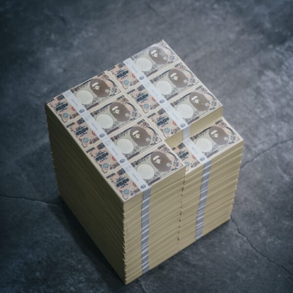 一方、札束を積み上げたようなユニークなデザインのスツールは、 APE HEADが描かれた札束を積み重ねたユニークな仕上がりに。