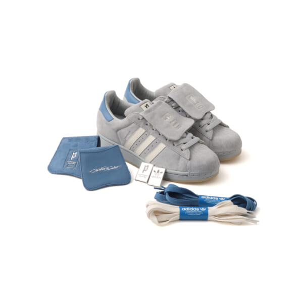 シュータン裏には、常田本人のサイン刺繍を施し、取り外し可能な2種類のロングシュータンを付属。さらに、サイドには通常のSUPERSTARロゴに代わり、POINTLESS JOURNEYの刻印をあしらった。加えて、付属品として2組のシューレースとカスタマイズ用のメタル製シュータン グラフィックピン2種を同梱。細部にいたるまで常田の美意識を反映させただけでなく、着用者が自身の好みに合わせて完成させることを前提に設計した1足に仕上がった。