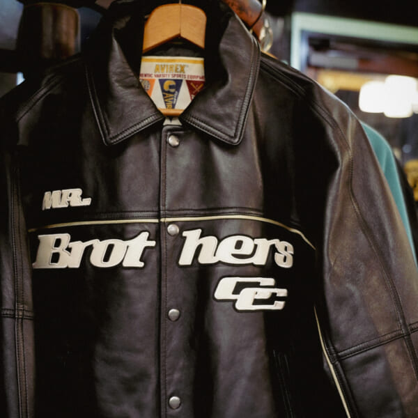 今年ブランド創業50周年を迎えた〈AVIREX〉と、今年オープン10周年を迎えた『MR.BROTHERS CUT CLUB』による今回のコラボレーションでは、〈AVIREX〉のシグネチャー VARSITYジャケットにデザインを施した限定モデルを展開。フロントには『MR.BROTHERS CUT CLUB』、背面には〈AVIREX〉のグラフィックをあしらい、コラボレーションを象徴とさせるデザインに。加えて、背面にあしらわれた“古き良きアメリカ”を感じさせる車のグラフィックが目を惹く1着に仕上がった。