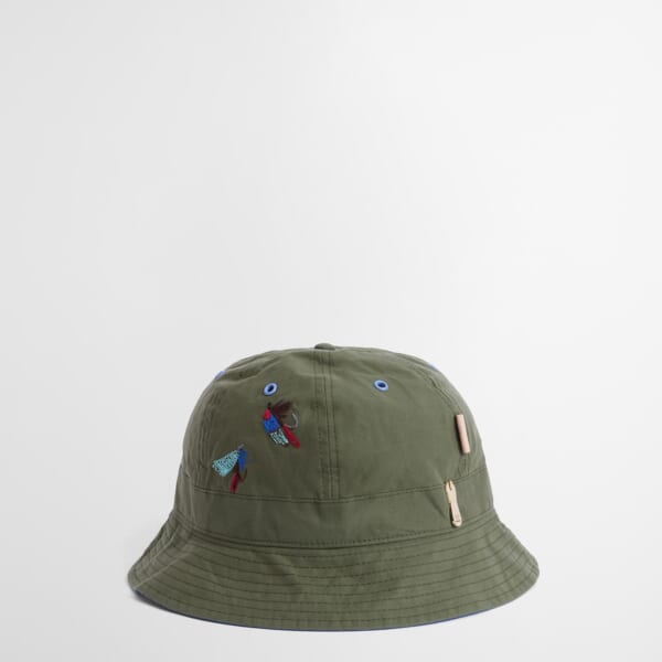 そのほか、〈Barbour〉のクラシックなジャケットを新たな視点で再解釈したアウターウェア、マス釣り用バッグから着想を得た新作サマーバッグ、フライフィッシングの刺繍を施したバケットハット、英国で親しまれてきた占いアイテム “Fortuna Fish(フォーチュン・フィッシュ)”に着想したピンバッジなどが揃う。