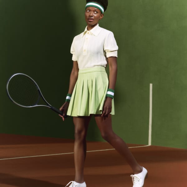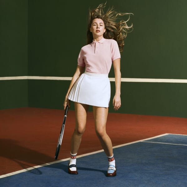 2026年春夏コレクションでは、クラブハウスの美学をオフコートでも活躍する多彩なスニーカー、ローファー、ヒールやフラットシューズに落とし込み、レトロでプレッピーなエナジーを表現。耐久性に優れたラバーアウトソール、ストライプのヘッドバンド風ウェビング、精巧なコートステッチなど、遊び心のあるテクニカルなディテールを取り入れ、クラシックなデザインに軽やかなアクセントをプラス。カラーパレットは、クリーンなテニスホワイトに、スカイブルー、グラスグリーン、クレイレッドなど、コートを象徴する配色を組み合わせている。