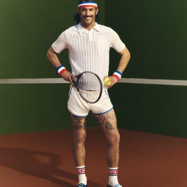ブランドの故郷・マヨルカ島のローカルなテニスクラブにて撮影されたビジュアルには、スペイン人コメディ俳優 Fabiolo Maza(ファビオロ・マサ)が風変わりなコーチ “El Capitán(エル・キャピタン)”として登場。真のアスリートぶりを称えるのではなく、コート上で相手にいいところを見せようと奮闘して失敗してしまう、そのユーモラスな魅力に焦点を当てている。