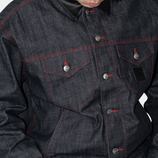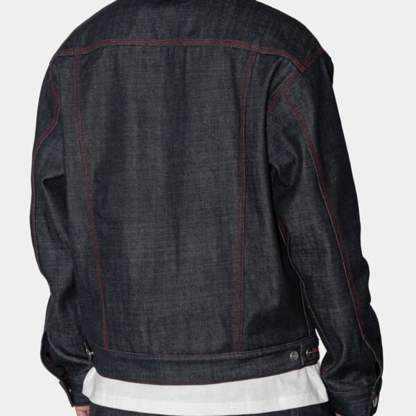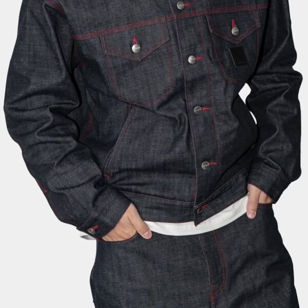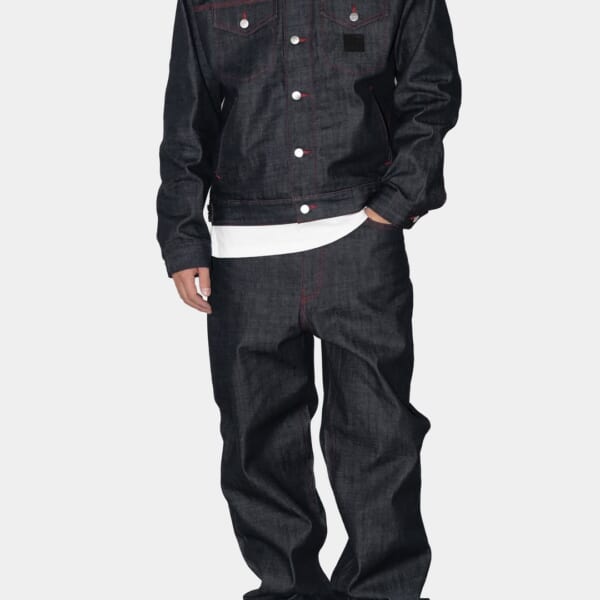 リジッドデニムジャケットは、以前発売された“Helston Jacket”に着想。13.5ozの生地に数少ないリジッド加工を施した本アイテムは、レッドのトリプルステッチ、チェストポケット、2つのフロントポケットをオン。裏地にはブランケットライナー、襟の部分は合皮で仕立てた。シルエットはゆったりとしたフィットを採用。ブラックレザーを用いたスクエアラベルを左胸にあしらい、より引き締まった印象に。
