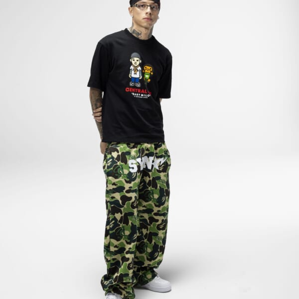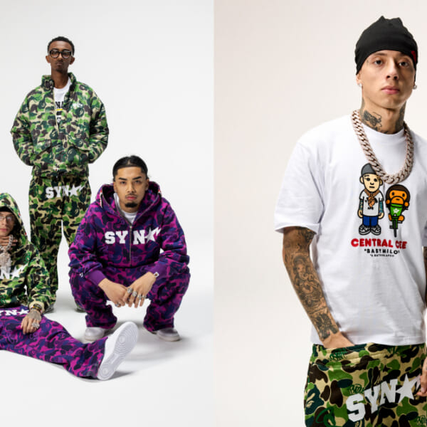 〈BAPE®︎〉のプロダクトが〈SYNA〉を通じて、セントラル・シーのデザインビジョンを表すキャンバスとして表現された本カプセルコレクション。各アイテムには、シンプルさを象徴するカモフラージュをはじめ、コレクションの形成に影響を与えた特徴的なシルエットや瞬間へのオマージュを随所にオン。さらに、創作の核に“音楽”があることから、彼の楽曲ムードやアイデアがシルエット、カラー、ディテールに込められている。