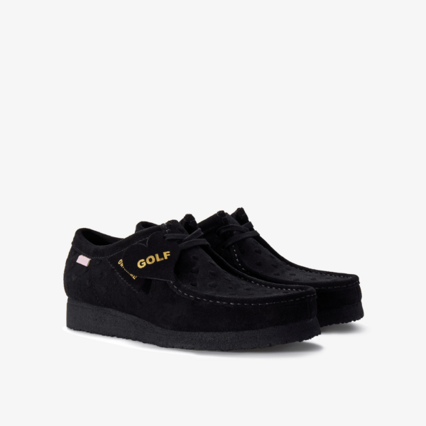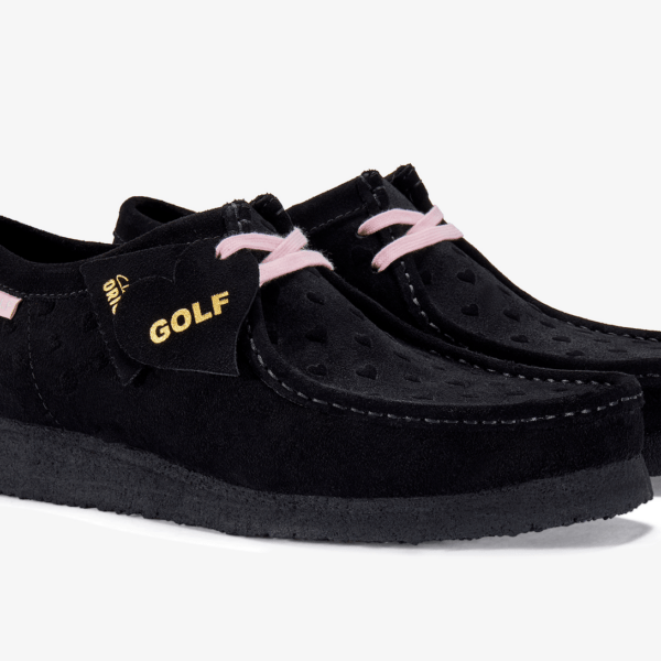 カラーは、前回のコレクションで展開されたブラックをリイシュー。それぞれに〈Clarks Originals〉のアイコニックなフォブと、〈GOLF WANG〉のハート型スペシャルフォブをあしらい、コラボレーションを象徴とさせる1足に仕上げている。
