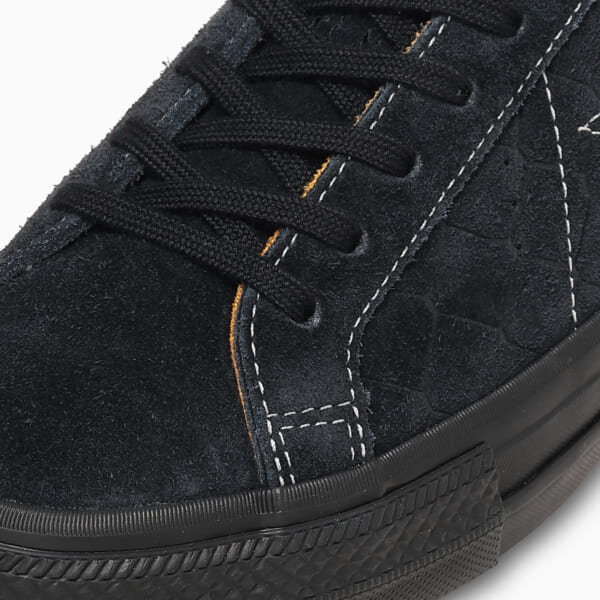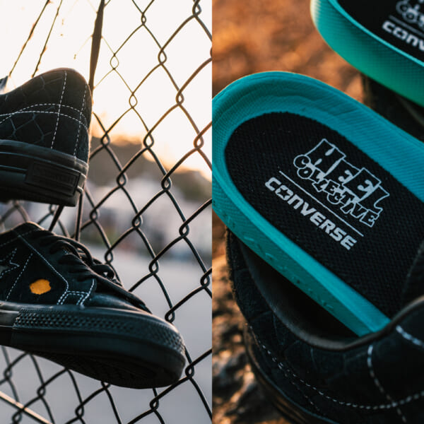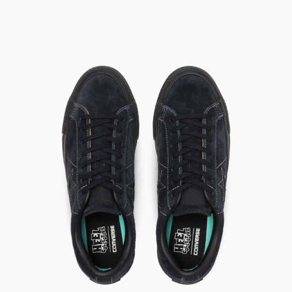 2018年に結成されたスケートクルー Heel Collectiveの世界観を反映した今回のコラボレーションでは、〈CONVERSE〉を代表するアイコン ONE STARをスケート仕様へアップデートしたONE STAR SKをベースモデルに採用。アッパーにはスエードを採用し、全面にフェンス柄をエンボス加工で表現。Heel Collective特有の無骨でダークな空気感を体現した。