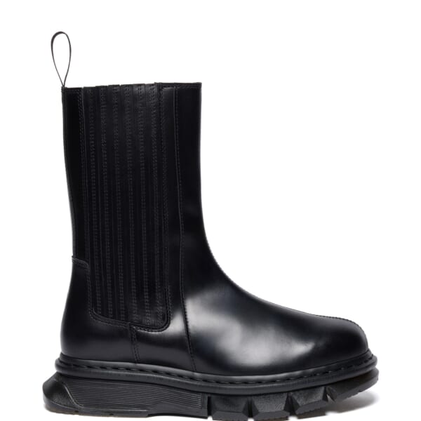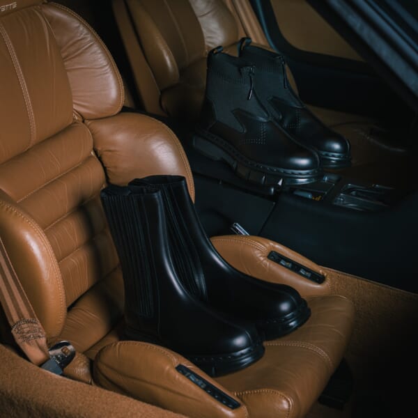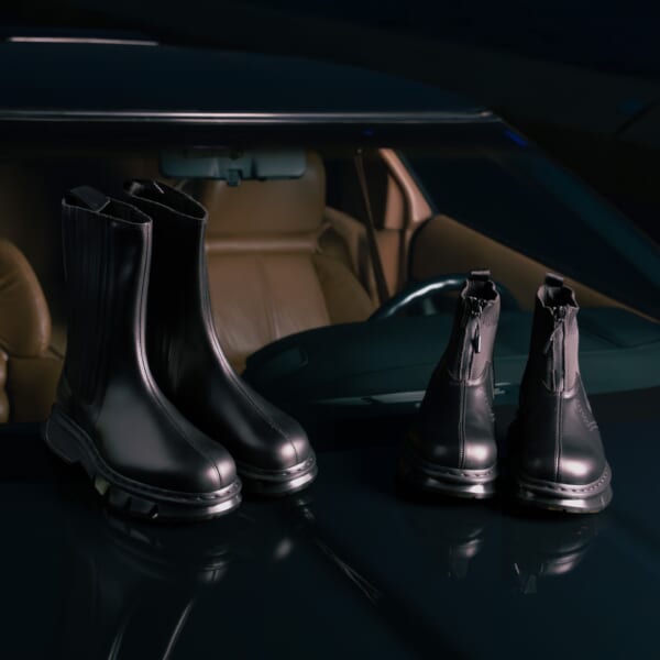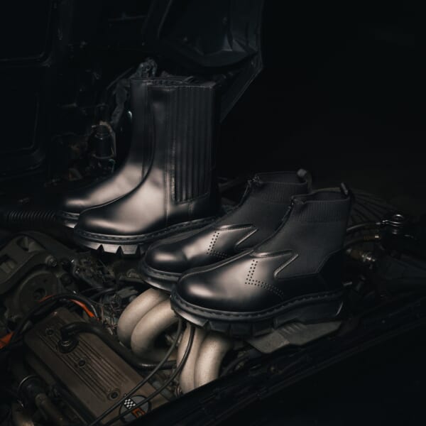 新コレクションはいずれも、耐久性に優れながら柔らかく滑らかな質感を持つブラックのオーリンズレザーを採用。チェルシーブーツは高さのあるシルエットで、レザーと伸縮素材を組み合わせたデザイン性のあるガセットが特徴となっている。