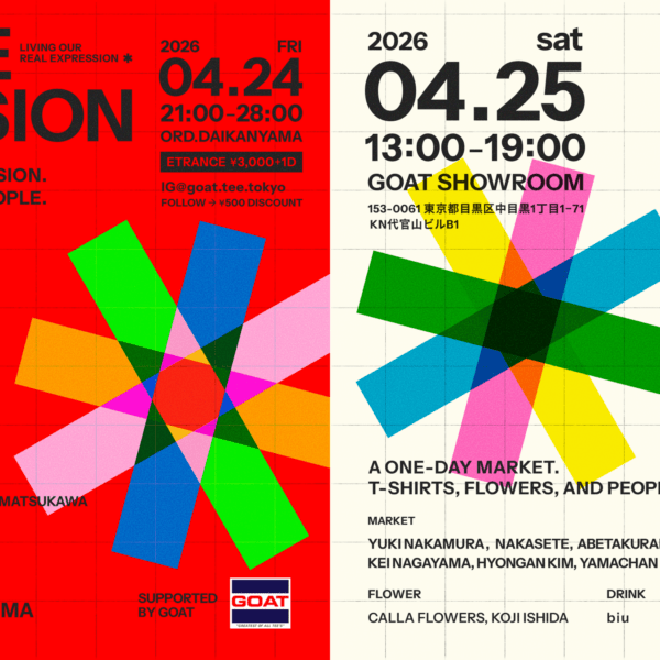 ブランクボディブランド〈GOAT(ゴート)〉が、4月24日(金)〜4月25日(土)の2日間、東京・代官山にてカルチャープロジェクト LORE by GOATを開催する。