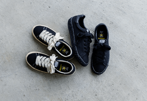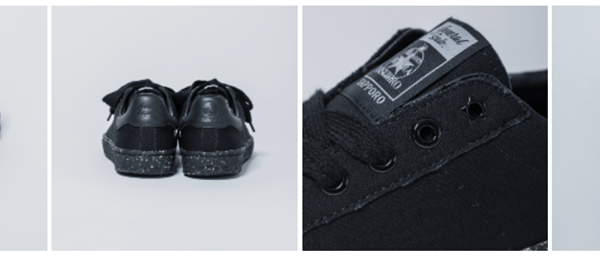 三原康裕が制作した本スニーカーは、〈Maison MIHARA YASUHIRO〉のサステナブルライン “General Scale.(ジェネラルスケール)”とのコラボレーションに。“大人の☆生。”をコミュニケーションテーマとして掲げているサッポロ生ビール黒ラベルとのコラボとして、ブラックを基調としたシックなデザインに、大人の遊び心を潜ませたスニーカーに仕上げている。