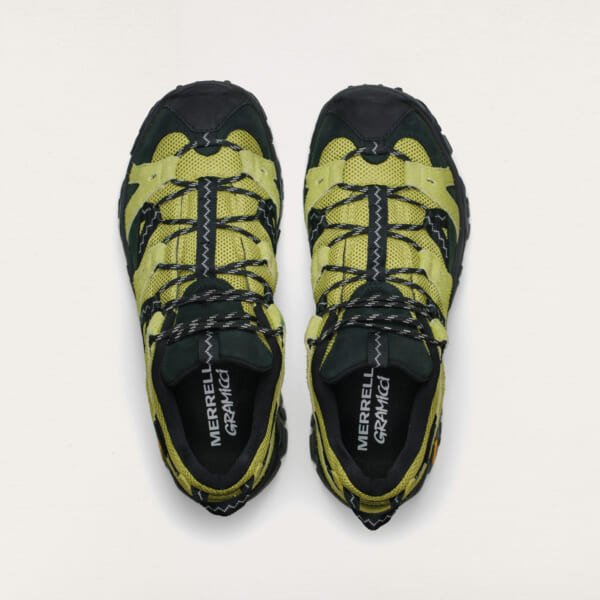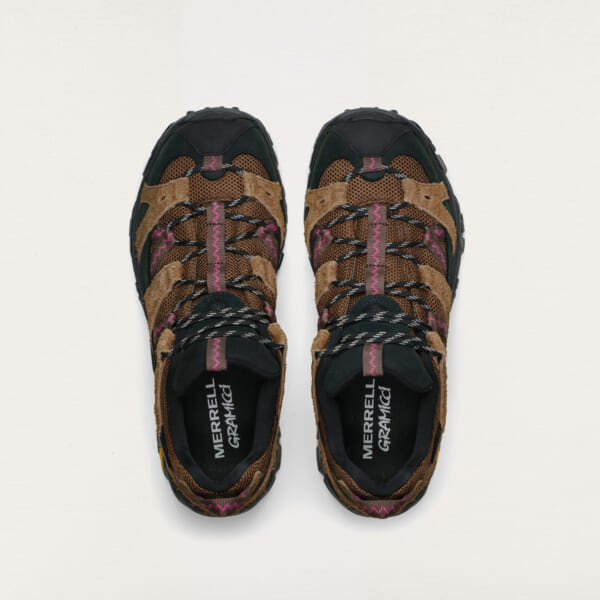わずか1年違いで誕生し、ともにアウトドア業界に多大な影響を与えてきた〈MERRELL〉と〈GRAMICCI〉。ヨセミテのクライミング・カウンターカルチャーにルーツを持ち、動き”に特化した革新的なウエアで世界中の〈GRAMICCI〉と、“LET’S GET OUTSIDE”を提唱し続け、探検者たちの象徴となっている〈MERRELL〉によるコラボレーションでは、それぞれの伝統を讃えると同時に、“現代のアウトドアカルチャーの再定義”を目指す試みとなっている。