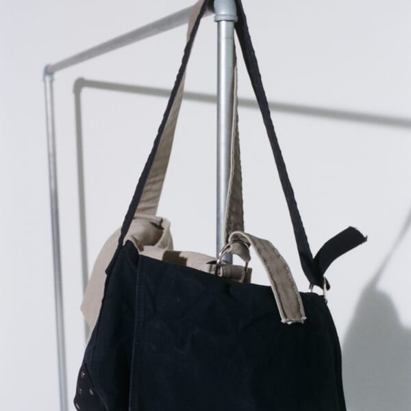 今回のコラボレーションは、職人の丁寧な手仕事により生み出される〈TEMBEA〉の機能的な製品と、〈MHL.〉のものづくりの姿勢が共鳴したことにより実現。〈TEMBEA〉の特徴である、40~50年前の古い織り機で織られた生地の耳(selvedge)は、切りっぱなしのような自然な表情を残しながら、デザインの一部として活用。一方で、〈MHL.〉の特徴である製品洗いを施すことで、使い込まれたような柔らかさと風合いを表現した。