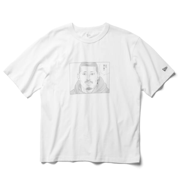 一方のTシャツは、洗い加工を施したコットンボディに、原作の名シーンやカバーアートを大胆にプリント。特に高橋モデルでは、〈NEW ERA®︎〉のキャップを着用したビジュアルへとアレンジされ、作品とブランドの融合を象徴する一枚に仕上がっている。