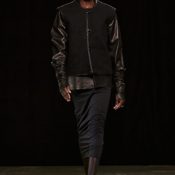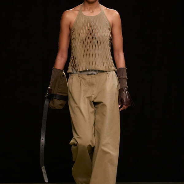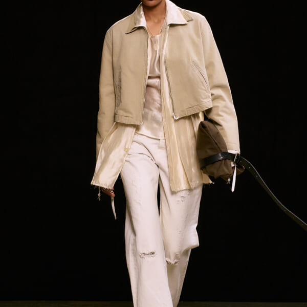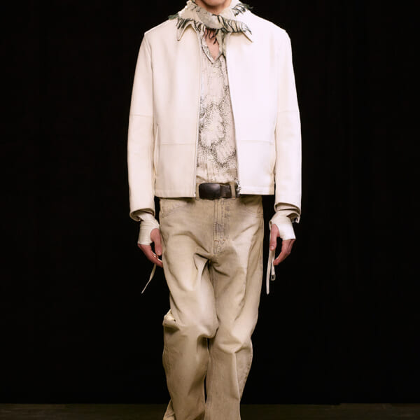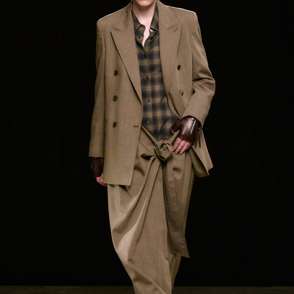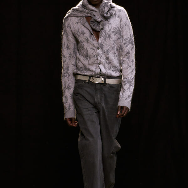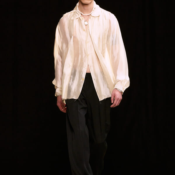 “Just clothes”をテーマとした今季。艶やかなシアー素材を用いたドレスから始まり、毛足の長いファーを装飾したストール、ストライプパターンのダブルスーツ、大ぶりのバラのモチーフが目を惹くソフトな質感のトップスなど、ドレッシーな雰囲気に〈Our Legacy〉らしい洗練されたデザインを加えたアイテムが数多く並ぶ。