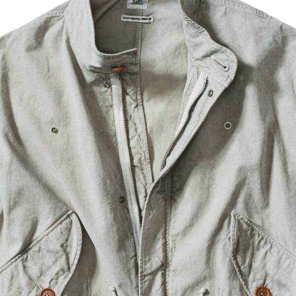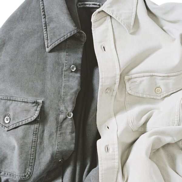 〈Our Legacy〉の現代的なシルエットに〈C.P. Company〉のデザインコードを融合し、マッシモ・オスティの〈C.P. Company〉におけるテーラリングやクラシックなメンズウエア要素を再解釈。具体的には、ピグメント染めのフィールドジャケットやMasis Bパーカ、レザーのアノラック、ギャバジンスーツ、ボタンダウンシャツ、Tシャツ、サーマル、コーデュロイパンツなどが並ぶ。
