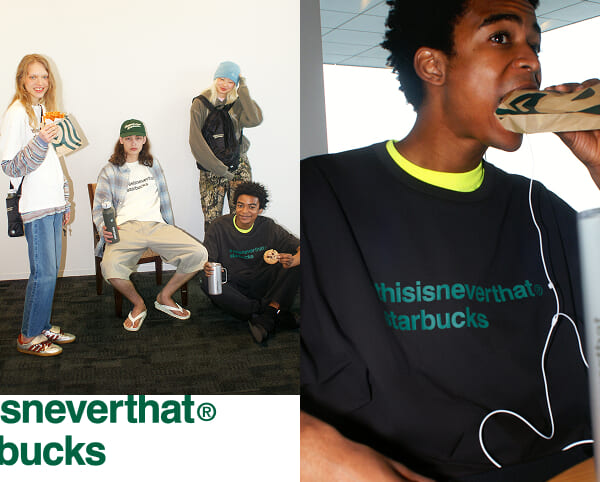 〈thisisneverthat〉のストリートスタイルとスターバックスが交差した、特別なコラボレーションアイテムは、4月28日(火)よりスターバックス公式オンラインストアにて販売開始。アイテムは数量限定となっているので、どうしても手にしたいという方はお早めにチェックしておこう。