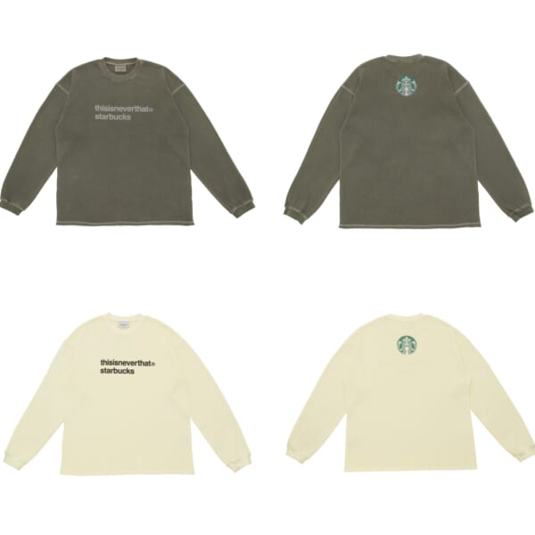 具体的には、フーディ、Tシャツ、キャップなどを含むアパレルに加え、ステンレスボトル、タンブラーなどのアクセサリー類を展開。〈thisisneverthat〉を象徴するワッフル素材やコットンジャージを取り入れたウェアには、ガーメントウォッシュやピグメント染めを用いて、長年着込んだような風合いを表現。背面にサイレンロゴをあしらったアイテムも揃え、スターバックスらしいアクセントも添えたアイテムに。サイズ展開は、スタイルに合わせて自由に楽しめるS〜XLのユニセックス仕様となる。