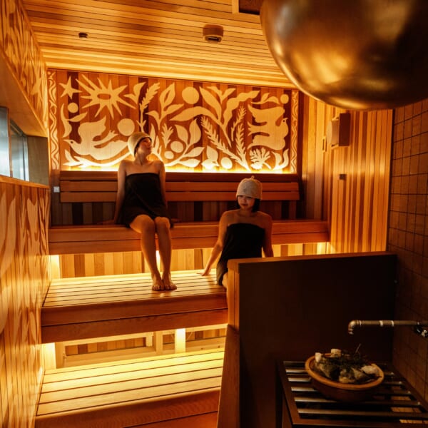 さらに、レストラン、ワークスペース、ナップスペース、アロマラボを併設し、1日を通して過ごせる滞在環境に。浴室には、男性5室・女性3室のサウナ室をはじめ、男女ともに2種類の水風呂と湯船を完備。ラトビアの伝統的な植物療法をベースとした施術 ウィスキングや、グループでの貸し切りなどにも対応する、プライベートサウナも備えている。
