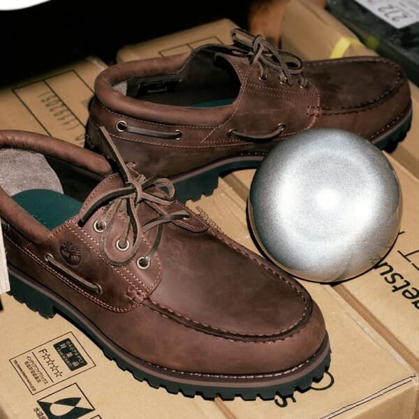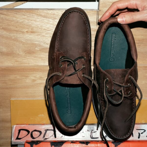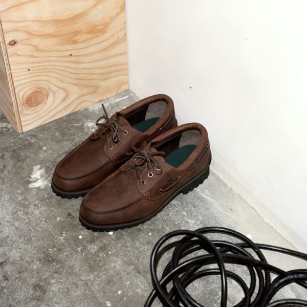 第3弾となる今回のコラボレーションにおいて〈thisisneverthat〉は、〈Timberland〉のクラシックなモカシンシューズであるスリーアイ クラシック ラグをベースモデルに採用。1978年に誕生したスリーアイ クラシック ラグは、上質なプレミアムレザーを手縫いで繋ぎ合わせた3アイレットのボートシューズに、頑丈なブーツのラグソールをドッキングした画期的なモデルだ。