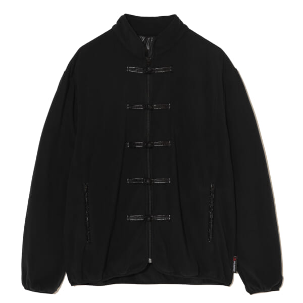 両氏に共通する定番アイテム “チャイナジャケット”から着想を得た、ユーモア溢れるデザインが特徴となっている。ダウンおよびベストには、軽量かつ薄手のダウンを採用。海外への移動時にもそのまま着用できる利便性を備え、パッキングのしやすさにも配慮。さらに、近年短くなった冬の季節に対応し、長い期間快適に着用できるようボリューム感を調整したという。