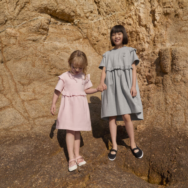 また、“UNIQLO and Cecilie Bahnsen”では、ブランド初となるガールズラインの展開も。同ラインでは、大人とのペアリングスタイルも楽しめるドレスやTシャツ、スコートがラインアップ。なかでもスコートは、可愛らしいデザインながらもウエスト調節が可能。着用者に合わせてフィット感がカスタムできる仕様に。加えて、両サイドにポケットをあしらい、少量の荷物を収納できる、機能性も備えたアイテムに仕上げている。