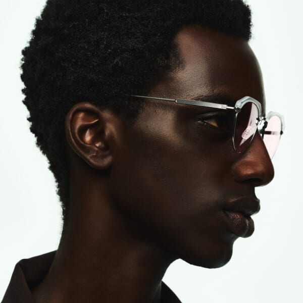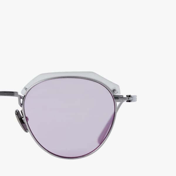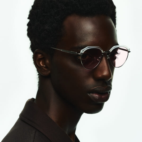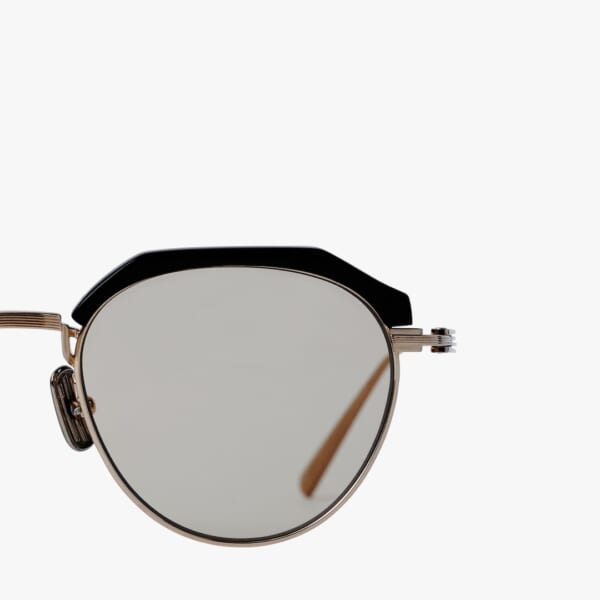 コラボ第2弾となる今回、ベースモデルにセレクトしたのは、都会的でありながら柔らかな印象を併せ持つブロウ型 “73/03”。本モデルのフロントは顔馴染みの良いクラウンパントシェイプを採用。ブロウパーツを薄く仕上げることで、ブロウタイプ特有の強さを抑え、顔立ちに自然と溶け込むバランスに整えている。