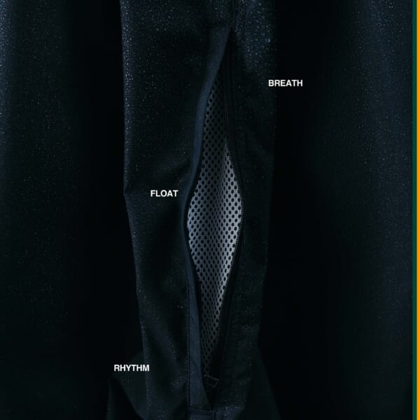 このたびリリースされるアイテム2型は、どちらもリサイクルナイロン・マイクロリップストップをベースに、特殊ウレタン透湿フィルムをラミネートした、薄手でしなやかな動きが特徴の3レイヤー素材を採用。透湿防水・撥水・防風といった高い機能性に加え、軽量でほどよいストレッチ感により、ストレスフリーな着心地を実現させた。