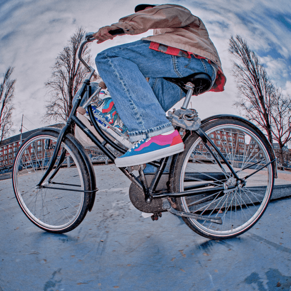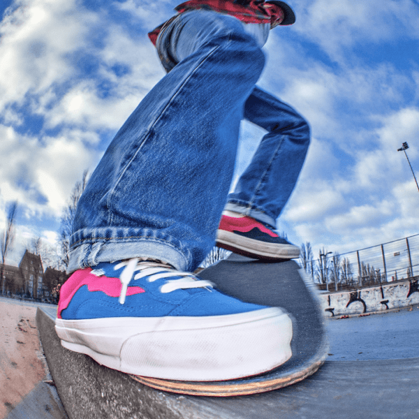 カスタムタンラベルと左右異なるインソールには、遊び心のあるタイポグラフィで“Don’t forget to skate in these(この靴でスケートすることを忘れるな)”というメッセージをオン。アート、スケートカルチャー、タイムレスなデザインが交差する1足に仕上がった。