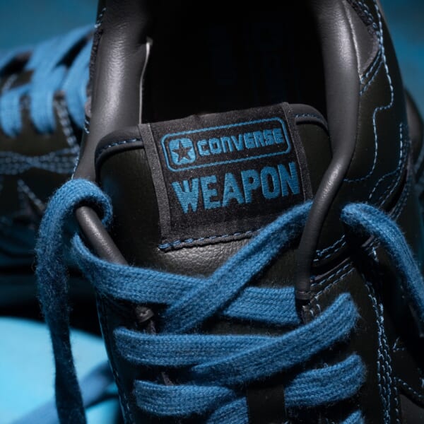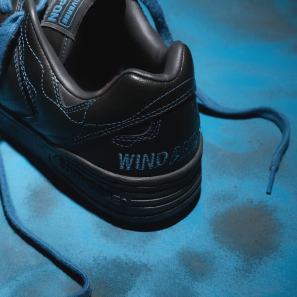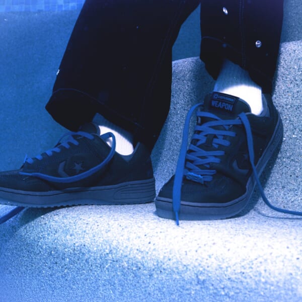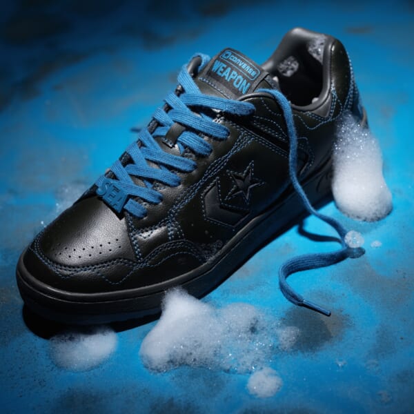 “月が照らす夜の海”をテーマとした初となるコラボレーションでは、1986年に誕生した名作バスケットボールシューズ “WEAPON(ウエポン)”をベースモデルに採用し、ストリート仕様にアップデート。〈WIND AND SEA〉のイメージカラーでもあるブルーを用いたブラック/ブルーの配色で、落ち着いた印象のなかにモダンなアクセントをプラスした。