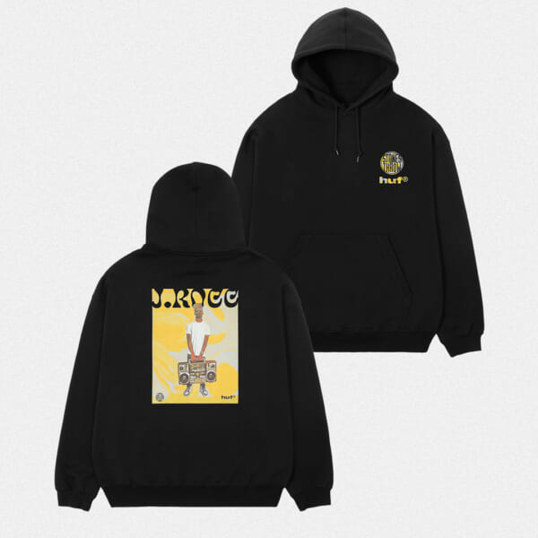 〈HUF〉x J Rocc x 〈Stones Throw〉によるフーディとTシャツは、11月1日(土)より〈HUF〉直営店にて販売中。Tシャツを購入すると、〈HUF〉別注カラーのカセットテープがスペシャル特典としてプレゼントされるとのことなので、どうしても手に入れたいという方はお早めにご確認を。