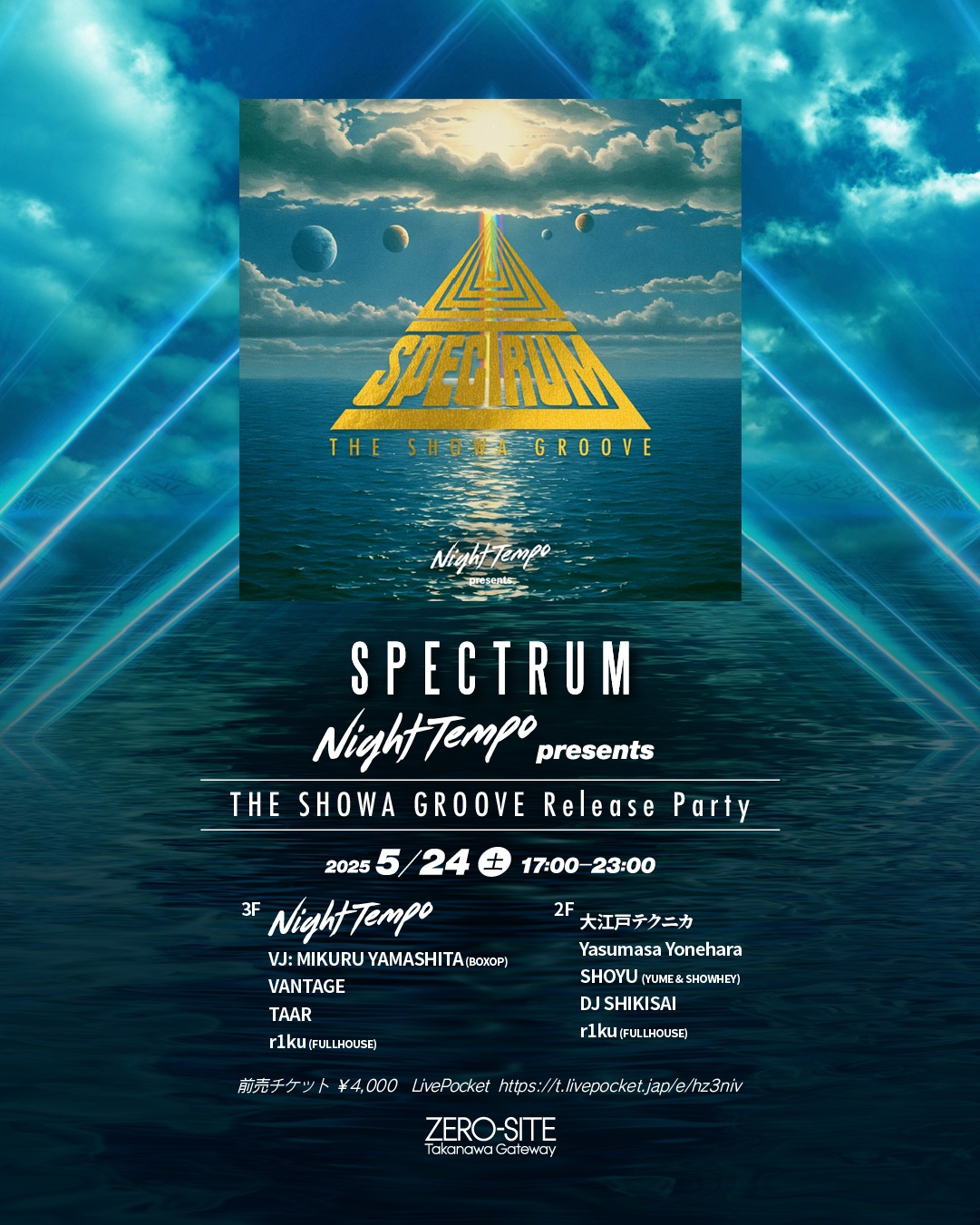 また、今作のリリースパーティ<SPECTRUM – Night Tempo presents The Showa Groove Release Party>が、高輪ゲートウェイ駅に4か月の期間限定でオープンしている東京・ZERO-SITE Takanawa Gatewayにて開催されることも決定。