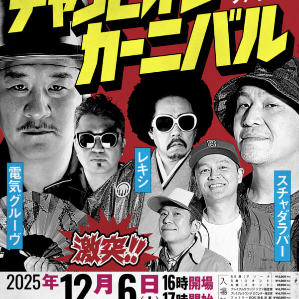 今年でCDデビューから35周年を迎えるスチャダラパーが、キャリア初となるアリーナでの主催イベント<YOKOHAMA UNITE 音楽祭 2025 presents チャンピオン・カーニバル 〜スチャダラパー35周年シリーズファイナル〜>を12月6日(土)に開催。今回は、日本を代表するライブアクトであり、スチャダラパーとも関係の深い、電気グルーヴとレキシの2組を招聘したスリーマン形式となる。