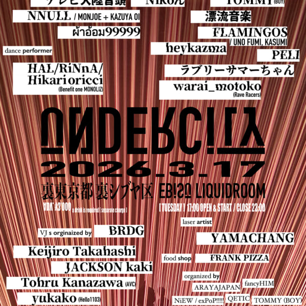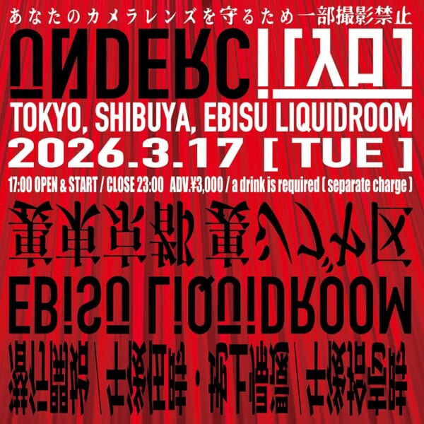 なお、本日公開された新たなフライヤーには、“あなたのカメラレンズを守るため一部撮影禁止”という警告が。“裏東京”という不可解な表記や、会場である東京・恵比寿リキッドルームを“(地下への)入り口”と呼ぶ点など、“UNDERCITY(地下都市)からのエフェクト”が散見される。